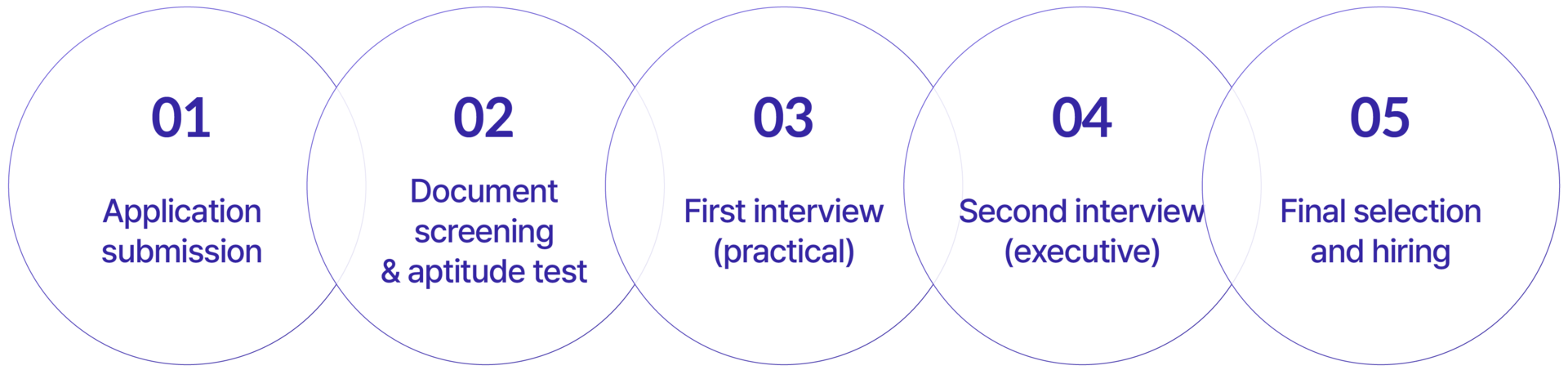 First Interview: Job-related interview with the working-level team, followed by individual notification of successful candidates